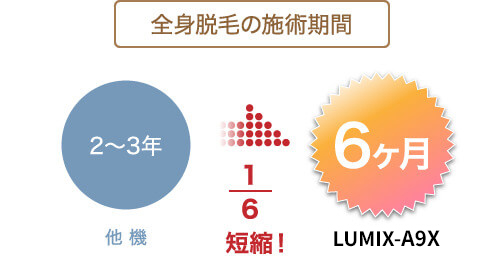 レーザー・IPL・SSC・・など、これまでの脱毛方式は毛周期に合わせた施術(2〜3ヶ月に1回)が必要でした。SHR方式では、毛周期に関係なく施術が可能なため、脱毛にかかる期間を大幅に短縮することが可能です。顧客満足度・ベッドの回転率も向上させることができます。