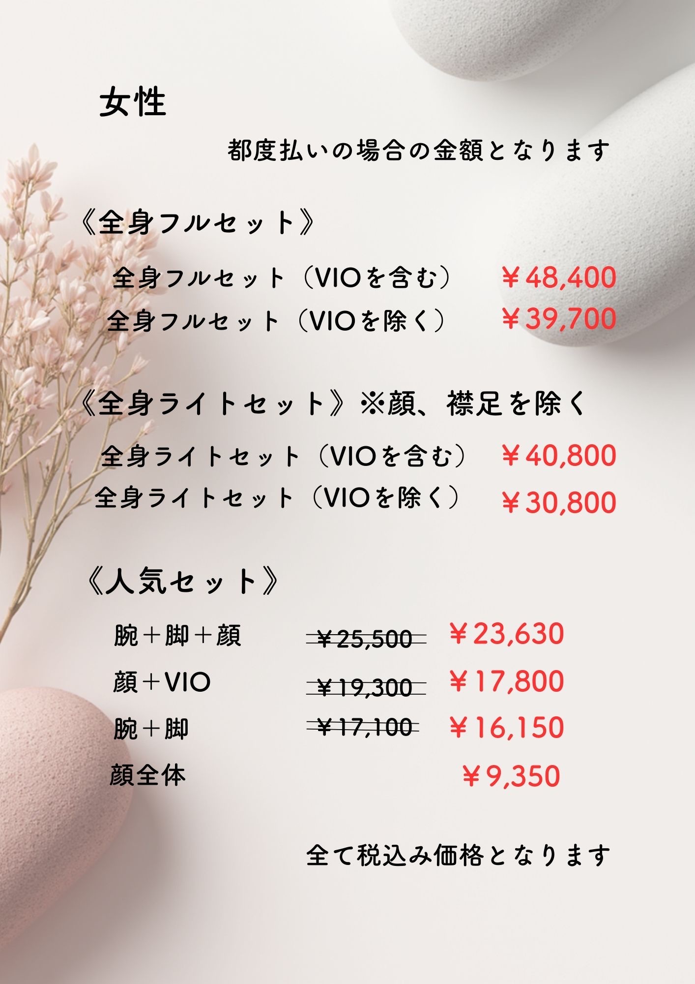 安心の環境で、女性が施術します
